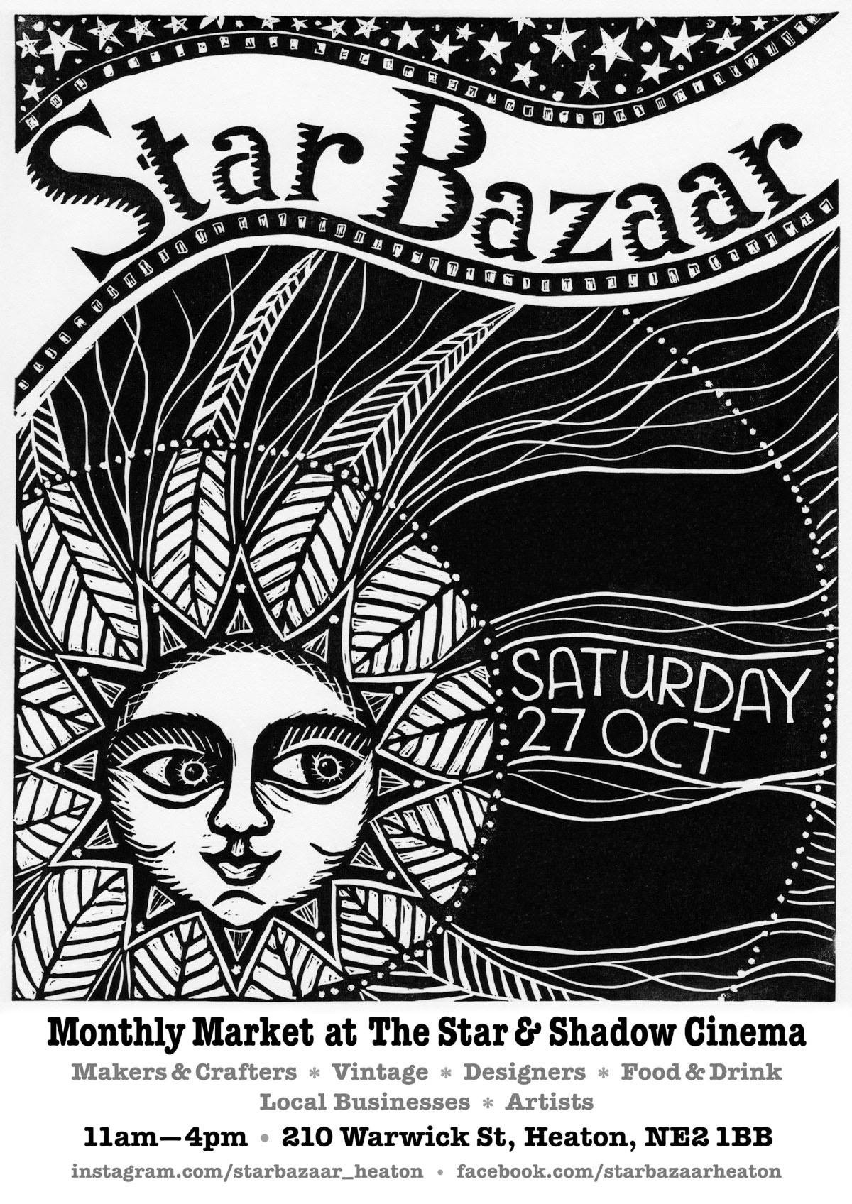 Star Bazaar is a monthly market at the Star and Shadow showcasing makers and crafters, artists, designers, vintage, collectables, food and drink and local businesses.