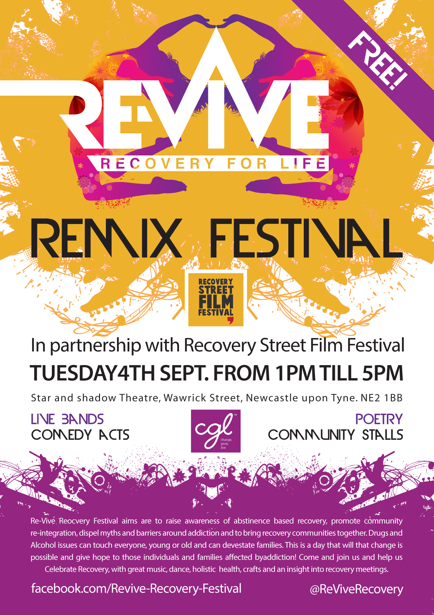 Re-Vive Recovery Festival aims are to raise awareness of abstinence based recovery, promote community re-integration, dispel myths and barriers around addiction and to bring recovery communities together.