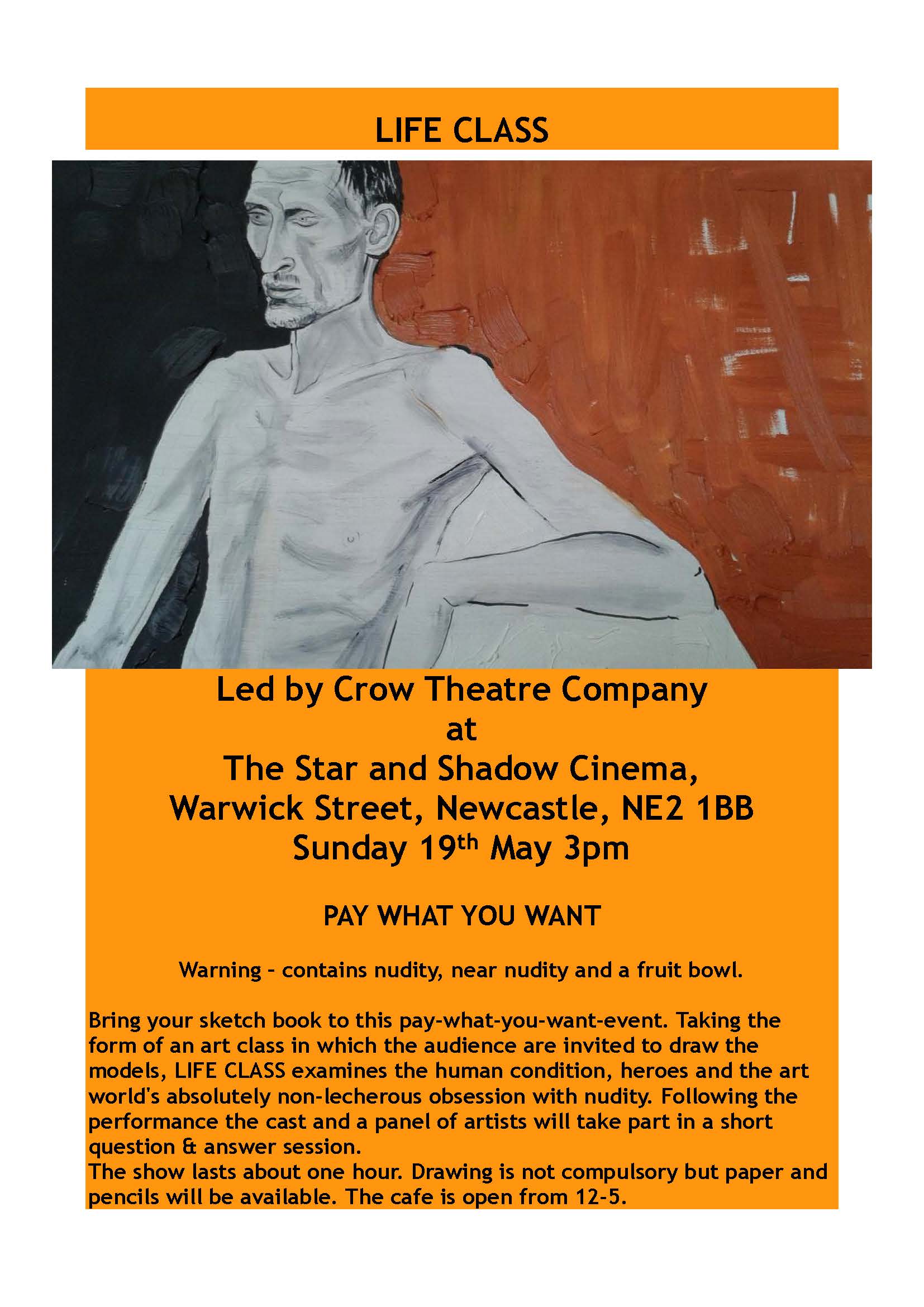 Taking the form of an art class in which the audience are invited to draw the models, LIFE CLASS examines the human condition, heroes and the art world's absolutely non-lecherous obsession with nudity.