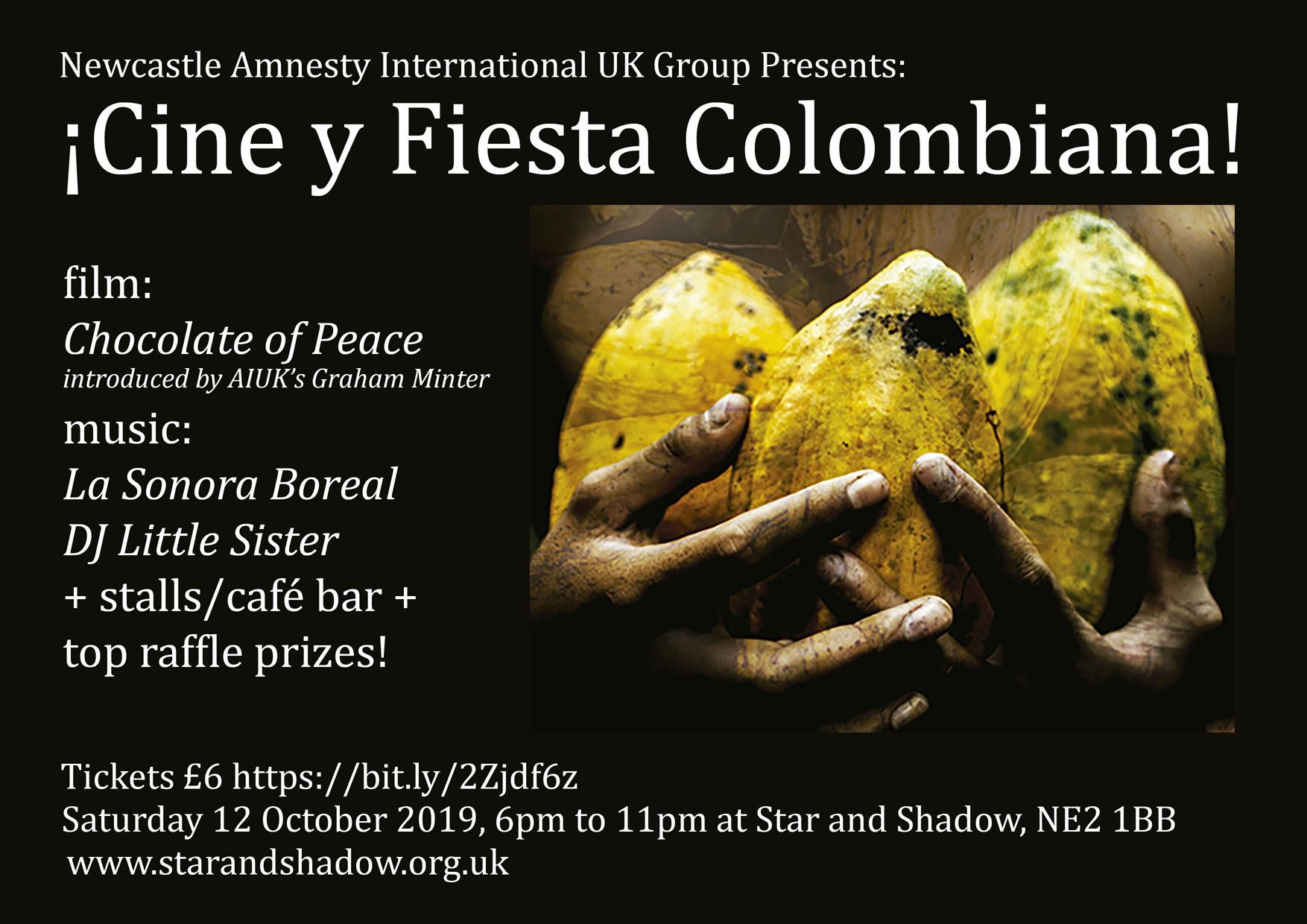 Film at 6.30pm ‘Chocolate of Peace’ introduced by Amnesty International Country Coordinator, Graham Minter. Dir: Gwen Burnyeat and Pablo Mejía Trujillo