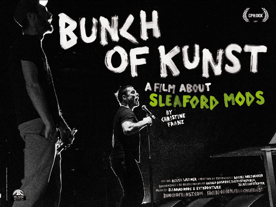 British punk duo Sleaford Mods have been called "the voice of Britain" by their fans, "Britain's angriest band" by the Guardian and "The world's greatest rock 'n' roll band" by Iggy Pop. Bunch of Kunst, Christine Franz’s official documentary feature, follows them on their two-year journey from Nottingham bedroom recording sessions to chart success.