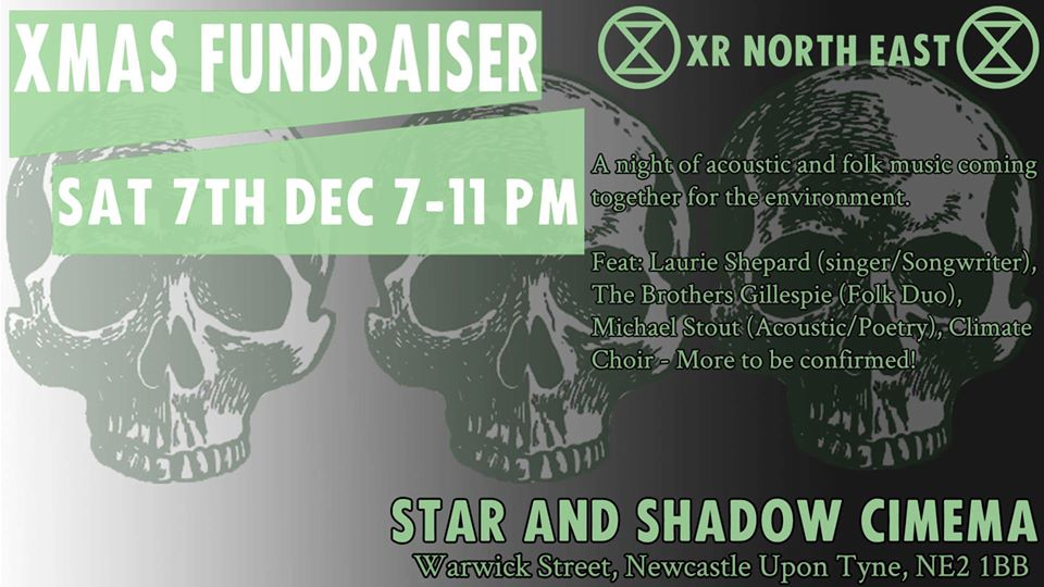 Welcome to the North East Extinction Rebellion Xmas Fundraising Gig. Raising money to support Extinction Rebellion arrestees - people who participated in non violent direct action protests in London and are facing trial. Come along to a night of music and dance to support those in need.