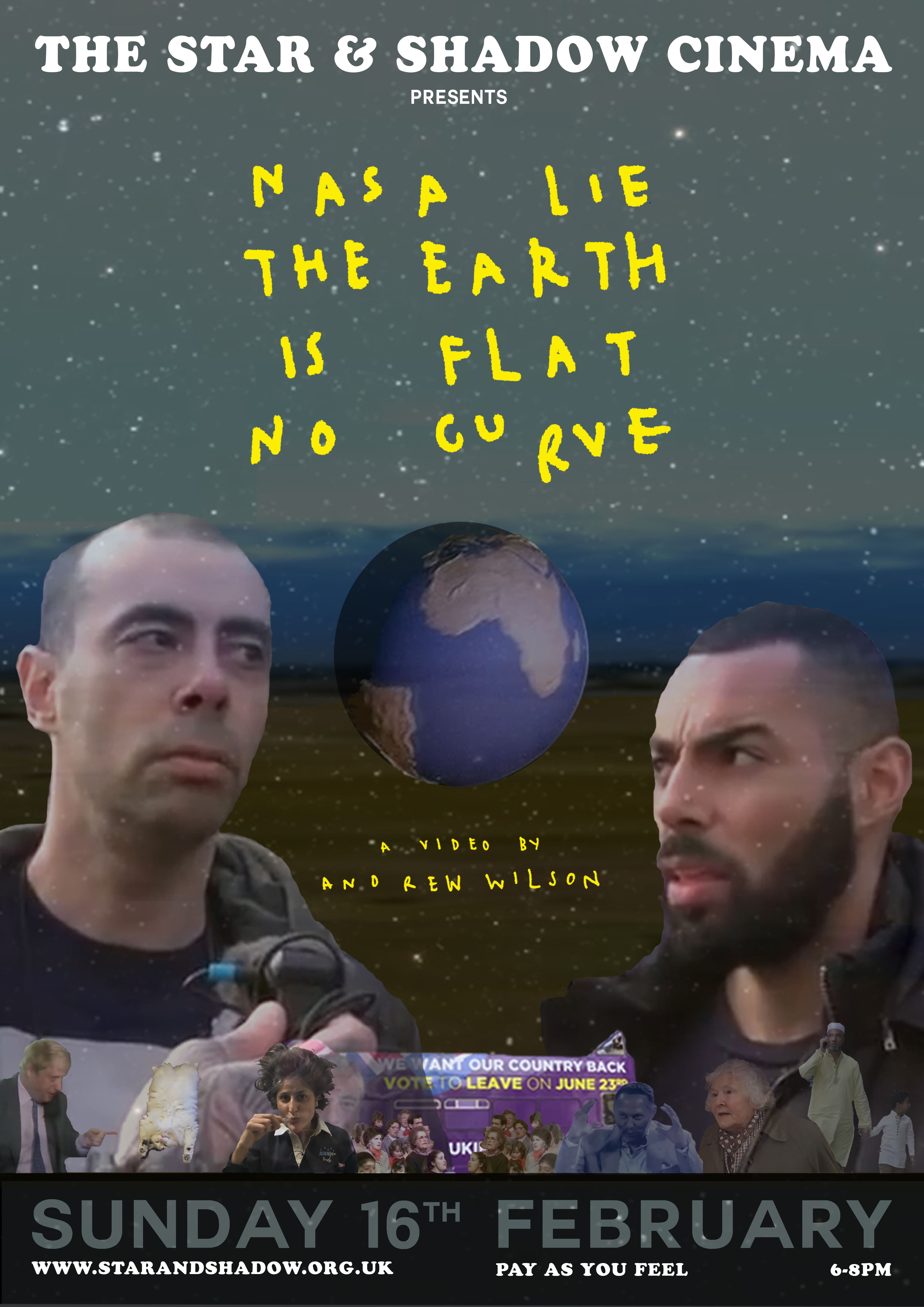 NASA LIE THE EARTH IS FLAT NO CURVE is a 30 minute, moving-image collage, made entirely from footage widely available from online video-media platforms. It is a playful and poetic invitation to reflect upon the broad social and political predicaments we currently inhabit, via the steadily growing culture of ‘Flat Earth’ theory.