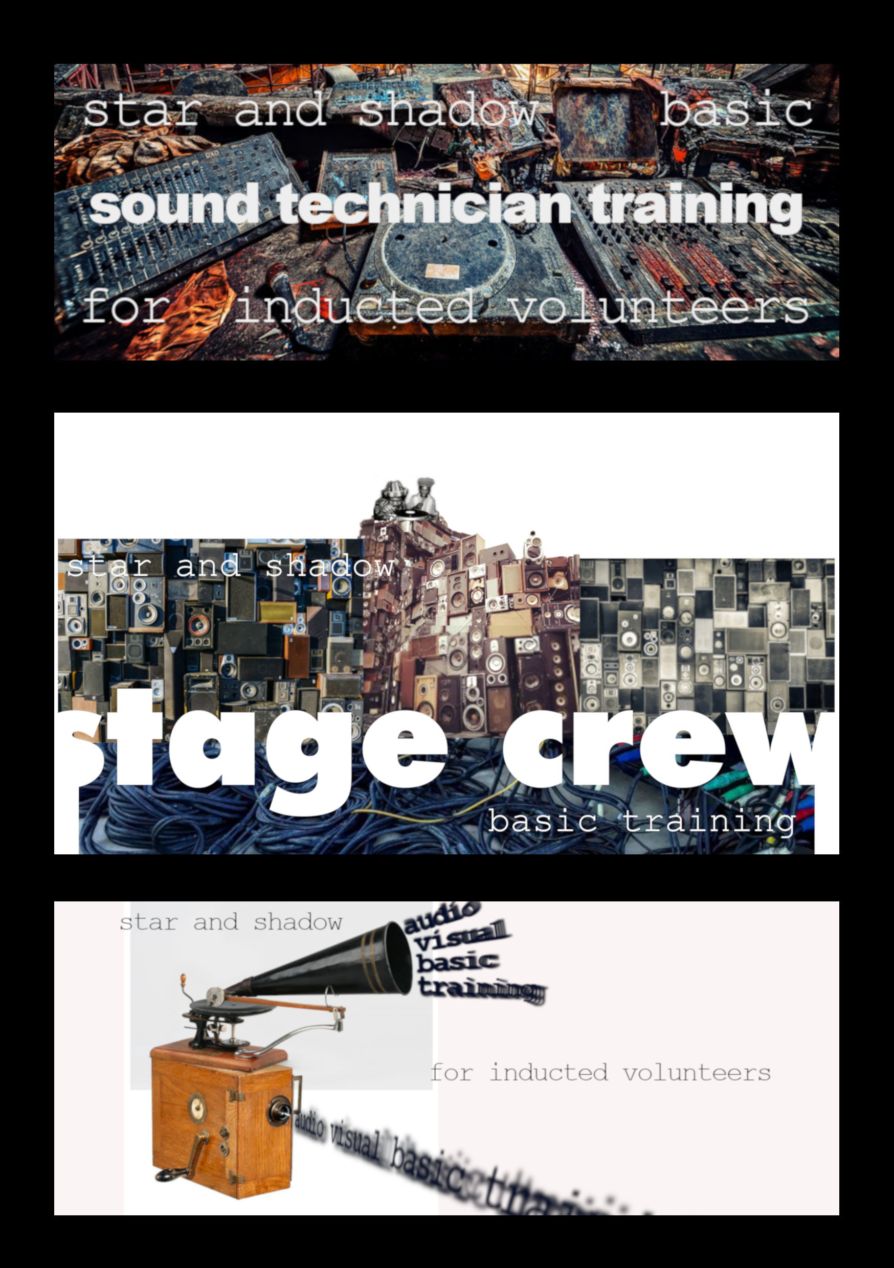 WE NEED STAGE CREW, SOUND ENGINEERS AND AUDIO-VISUAL TECHNICIANS...learn where everything is, what plugs into what and how to get the best out of it throughout the building in one hands on 5 hour session...no experience necessary...sign up on the rota