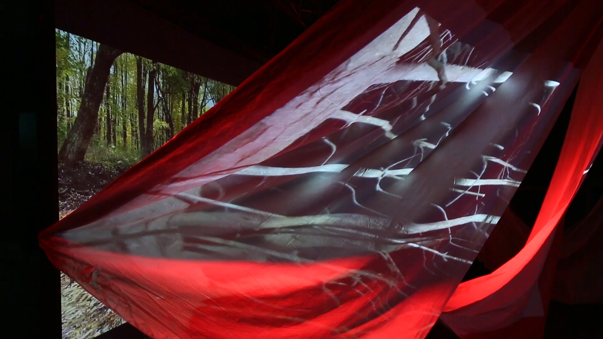 The livestream performance uses the empty Roulette theatre to stage Swans Lakeless as live interaction with fixed media. From 2019–2021, the collaborators worked in parallel processes to develop the sound world, poetry, and visual terrain of the piece by compiling source footage, musical performance footage, and Shannon Lumpkin’s solo performances for camera. Confined to England due to the pandemic, Dawn Felicia Knox projected the video source material onto non-traditional surfaces intercepted by fields of coloured light in the Star & Shadow, Newcastle-upon-Tyne. The resultant work is an intermedia composition of the evolving installation, inhabited through Anastasia Clarke’s music and sound, which unfolds Shannon Lumpkin’s poetry.