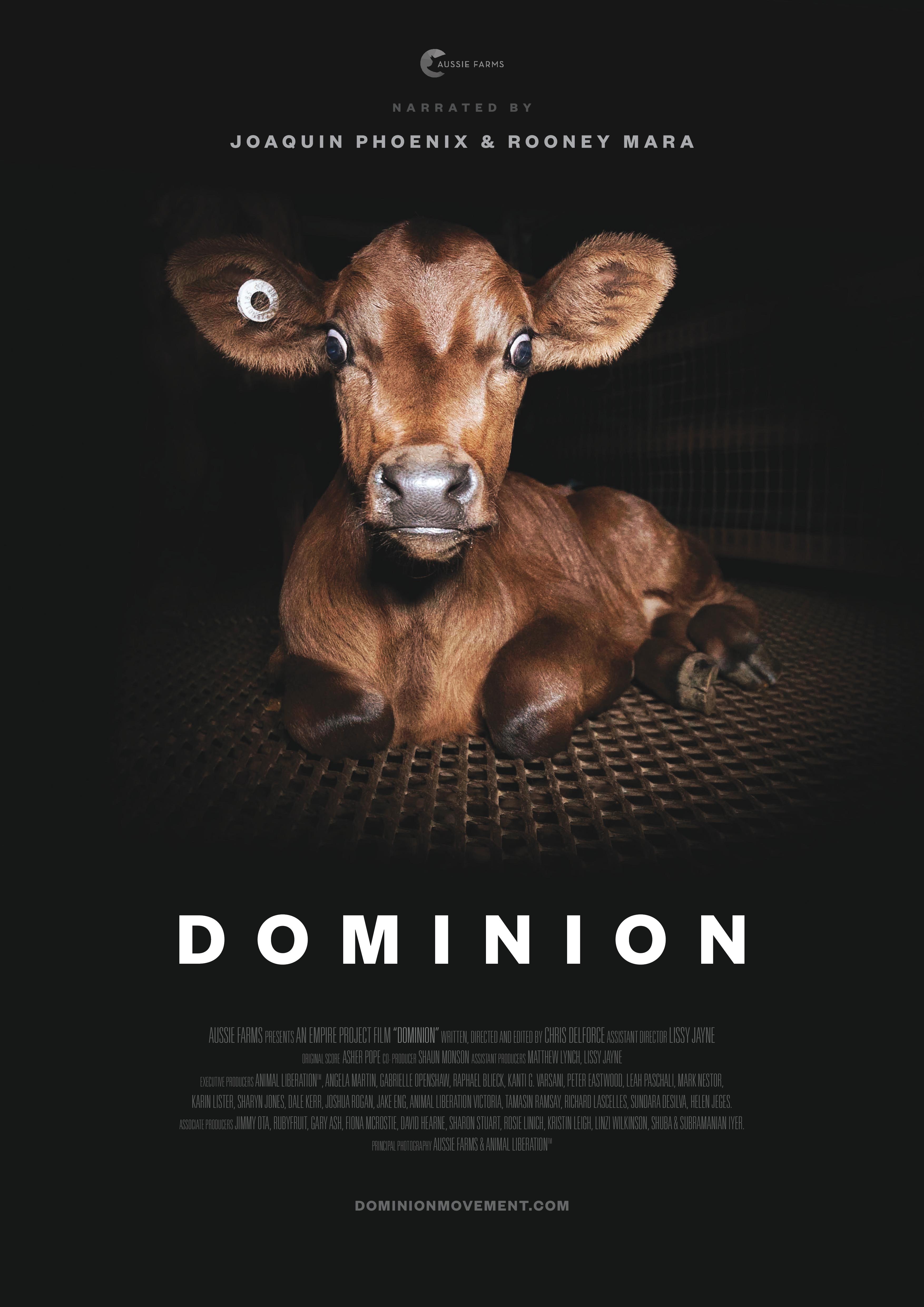 Narrated by stars such as Joaquin Phoenix, Rooney Mara and Sia, Dominion uses drones, hidden and handheld cameras to expose the dark underbelly of modern animal agriculture, questioning the morality and validity of humankind's dominion over the animal kingdom. While mainly focusing on animals used for food, it also explores other ways animals are exploited and abused by humans, including clothing, entertainment and research.