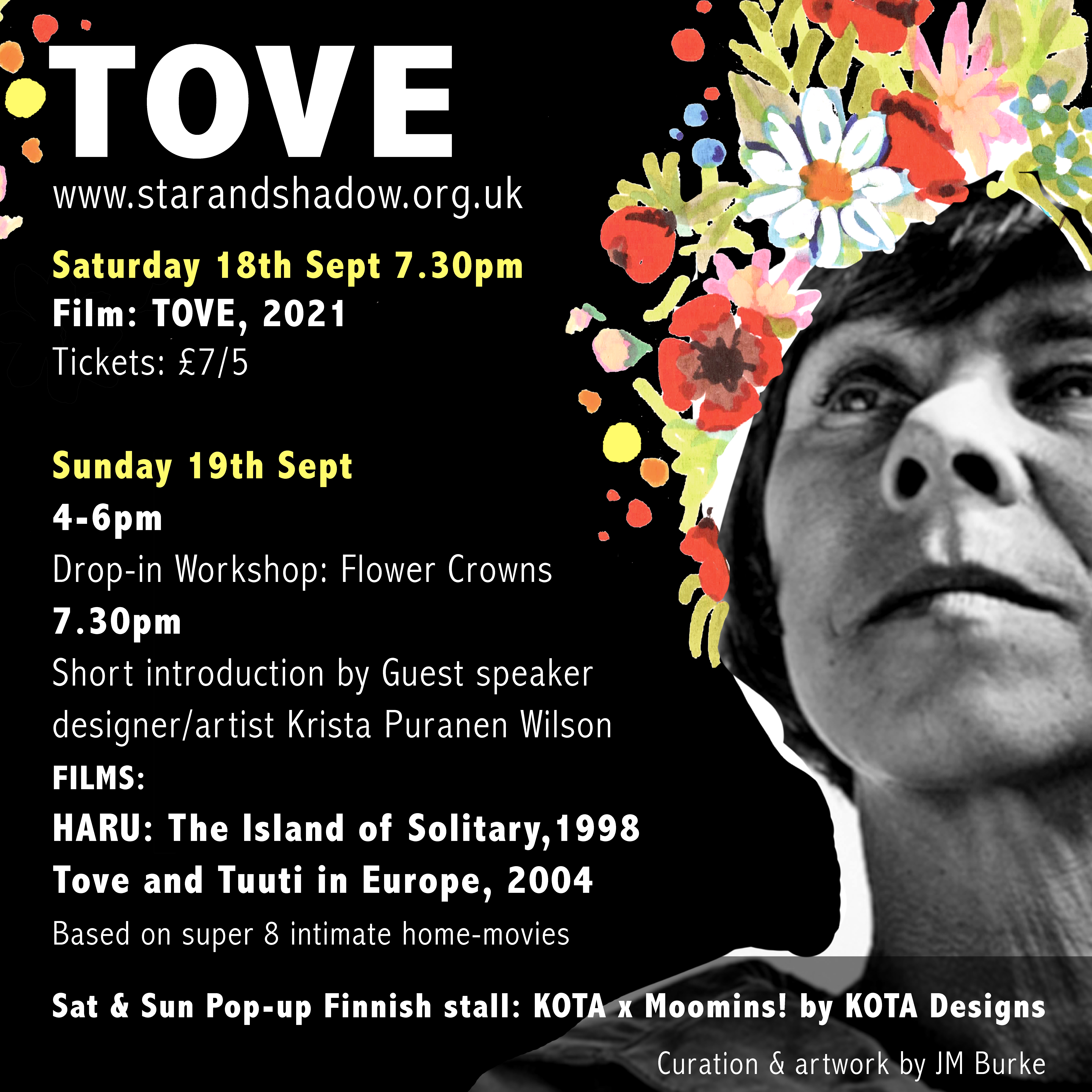 Tove is known in many an iconic photograph for her defiant and beaming smile whilst adorned in flower crowns. Flowers also feature largely in the Moomin stories too, from the roses that Moominmamma grows in her garden to Tulippa, the little girl who lives inside a tulip from The Moomins and the Great Flood. Growing up in Finland, surrounded by nature, it’s no wonder that flora and fauna had a big influence on Tove’s artwork and writing from the Moomins and her adult literature such as the wondrous The Summer book to the importance of nature in her own life (featured largely in the super 8 film Haru, Island of Solitary to be screened later at 7.30pm Sunday sept 19th at Star and Shadow Cinema). https://www.starandshadow.org.uk/programme/event/the-intimate-home-movies-of-the-creator-of-the-moomins,5593/