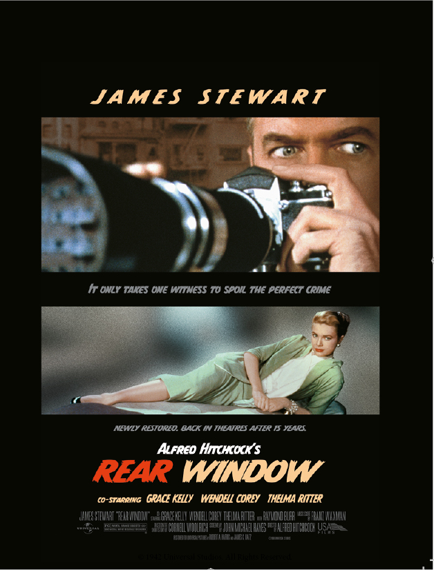 Hitchcock classic, Jimmy Stewart voyeuristically watching his neighbours whilst recovering from a broken leg, finds himself witness to murder with only Grace Kelly and Thelma Ritter to help.