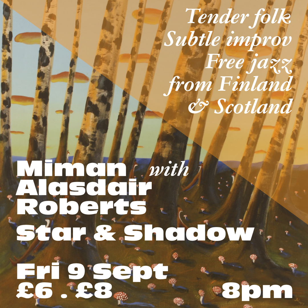 As part of the group “Völvur” they backed Alasdair Roberts on the highly acclaimed album “The Old Fabled River” (Drag City) in 2021, and they are thrilled to do two exclusive shows featuring Mr. Roberts in the UK in 2022, at The Old Hairdresser’s in Glasgow and at Star and Shadow. Expect subtle improvisations, tender ballads and of course a couple epic originals from the one and only Alasdair Roberts.