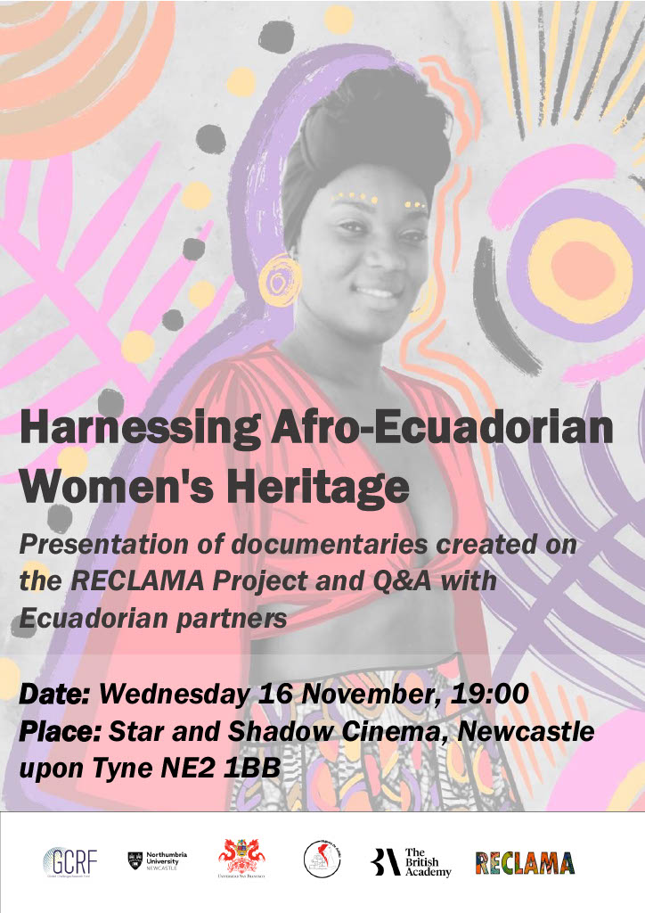 Since 2019, the transnational, decolonial feminist research project RECLAMA (Harnessing Afro-Ecuadorian Women’s Heritage), has been committed to documenting the heritage of Afro-descendant and Black women in Esmeraldas Province, Ecuador. Young Afro Ecuadorian women from across Esmeraldas have been key to the success of the project, working as peer researchers to collect oral history interviews with older women in their communities. A group of peer researchers and interviewees worked together to produce a series of creative outputs, including artwork and short documentaries, celebrating diverse aspects of their collective heritage.