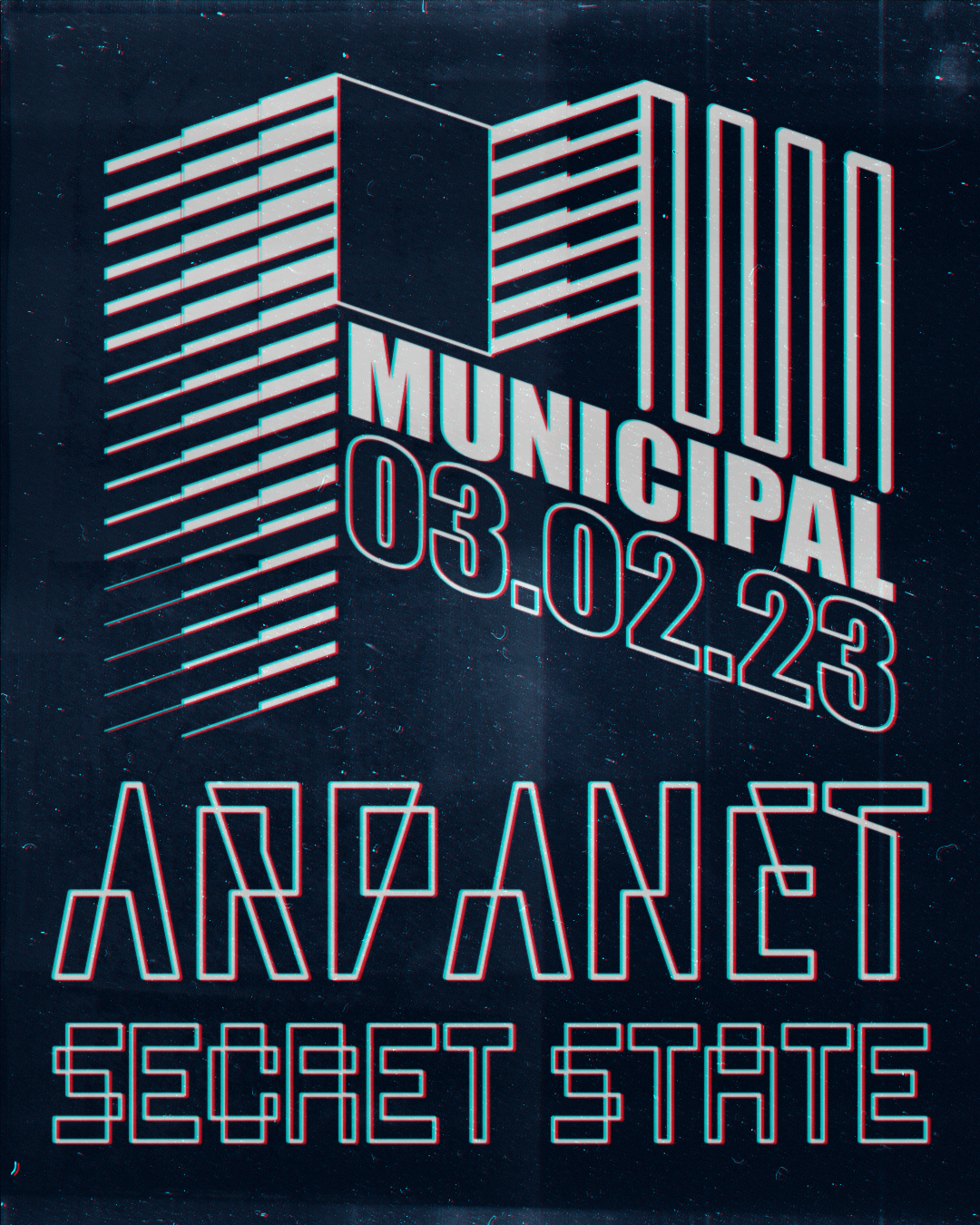 Municipal presents ARPANET Live + SECRET STATE Live // Friday 3rd February // Star & Shadow Cinema.