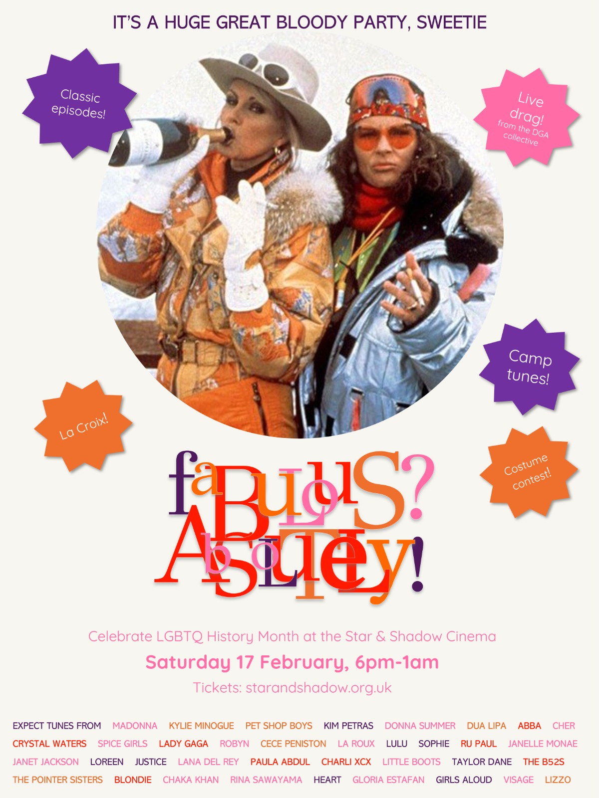 You are cordially invited to join us for Fabulous? Absolutely! Our party event to celebrate one of the queerest shows to have ever been shown on the BBC! Absolutely Fabulous!