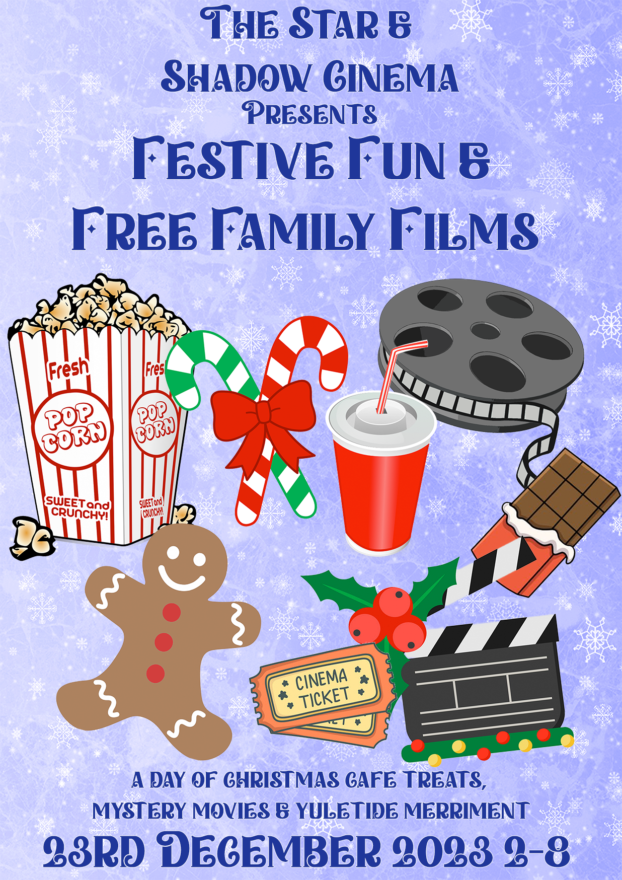 Come one come all to the Star & Shadow cinema! We are throwing a festive shindig with Christmas treats, festive films, and mulled wine! Two mystery Christmas movies for you to enjoy: at 2pm a family friendly film, and at 6pm a yuletide vintage romance. Both free!