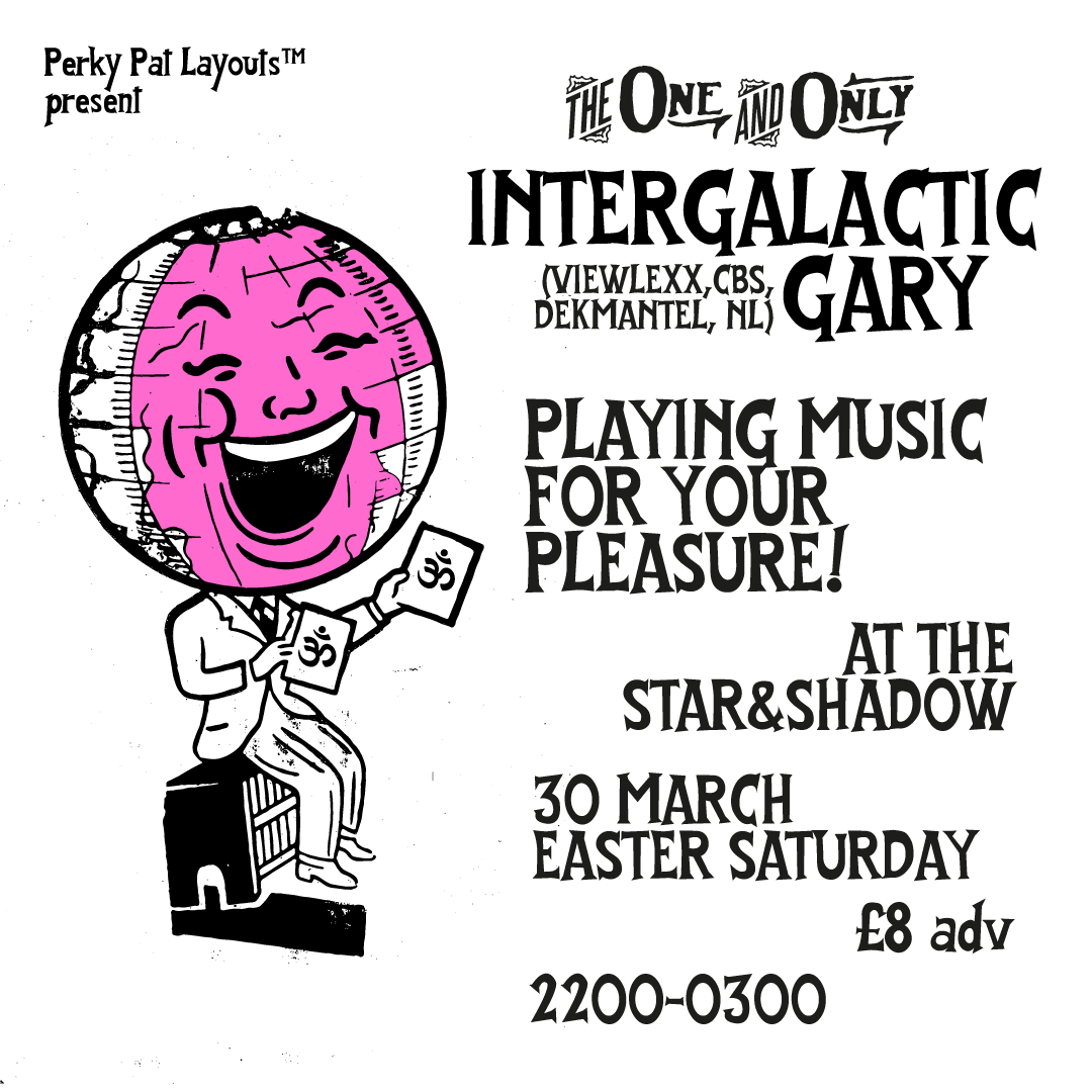 Cult DJ, wax wizard and surefire selector Intergalactic Gary graces the Star & Shadow on Easter Saturday with a very special 4hr set bridging all points betwee Italo, mutant disco, raw acid and mind expanding techno.
