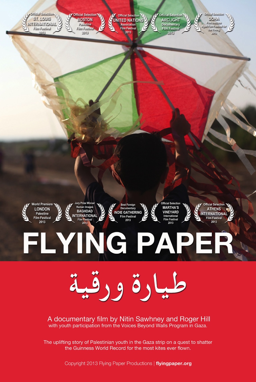 We present. the award-winning documentary film Flying Paper, showcasing the uplifting story of Palestinian children in the Gaza Strip on a quest to shatter the Guinness World Record for the most kites ever flown.