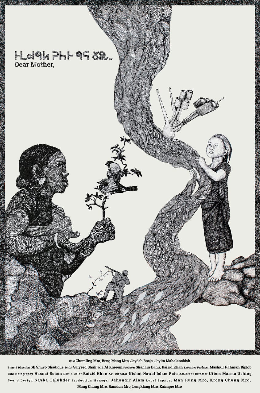 I don’t know how this type of inhumanity can be tolerated by a human being. And I was determined that I'd tell that story in my way, through filming. The region is strictly under army supervision, even when employing cameras there. So we follow the guerilla filmmaking process, where we have a team of seven crews. I consider it a blessing that I was able to assemble a group of individuals who shared the same blood type in order to present the story of the persecuted hill tracts' inhabitants. The village where we shot the entire movie was quite far away, so we traveled there in secret so that nobody would see us, especially the intelligence officers. Actually, Mro tribes live in that village, and Mro culture was incorporated into our movie's plot. They are the oldest and most marginalized tribes in the Chittagong Hill Tracts area. At first, we were only a team of seven, but within a few days, the entire village had joined us as our crew. The whole village took part in our film production, even though we felt that we became the inhabitants of that village. The entire film was shot over the course of two years with one camera, a tiny tripod, a single 24mm lens, and a 60W LED light. We designed the production process within our limitations but never felt constrained."