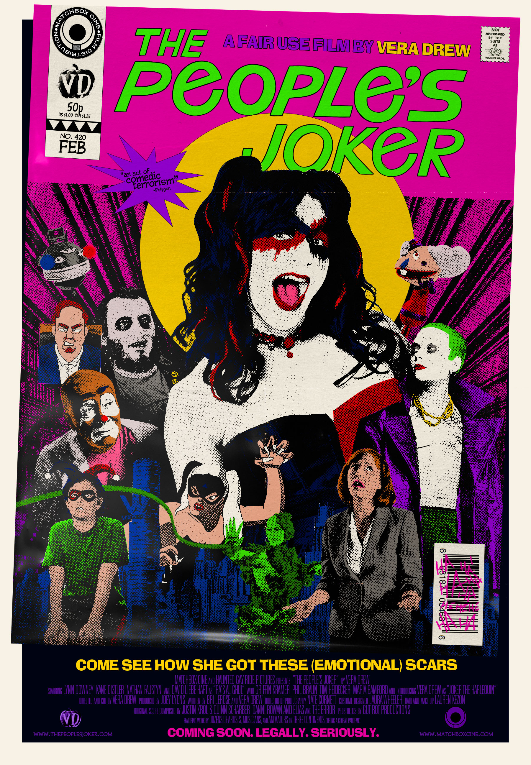 This revolutionary DIY parody film and hilarious reimagining of the classic autobiographical coming-of-age story follows an unconfident, closeted trans girl as she moves to Gotham City to make it big as a comedian by joining the cast of UCB Live - a government-sanctioned late night sketch show in a world where comedy has been outlawed. As mainstream success eludes our heroine, leading her to unite with a ragtag team of rejects, misfits, and a certain love interest named Mister J, "Joker the Harlequin" is born again as a confident (and psychotic) joker on a collision course with the city's fascist caped crusader. Vats of feminizing chemicals, sexy cartoon interludes, scarecrow psychiatrists, CGI Lorne Michaels, and psychedelic gender dysphoria all play supporting roles. Helmed by writer/director/editor/star Vera Drew and using her own life experiences as a basis for the film, as well as boasting cameos from DAVID LIEBE HART, SCOTT AUKERMAN, TIM HEIDECKER, MARIA BAMFORD and BOB ODENKIRK, The People's Joker is a deeply personal journey that's as much documentary as it is parody.