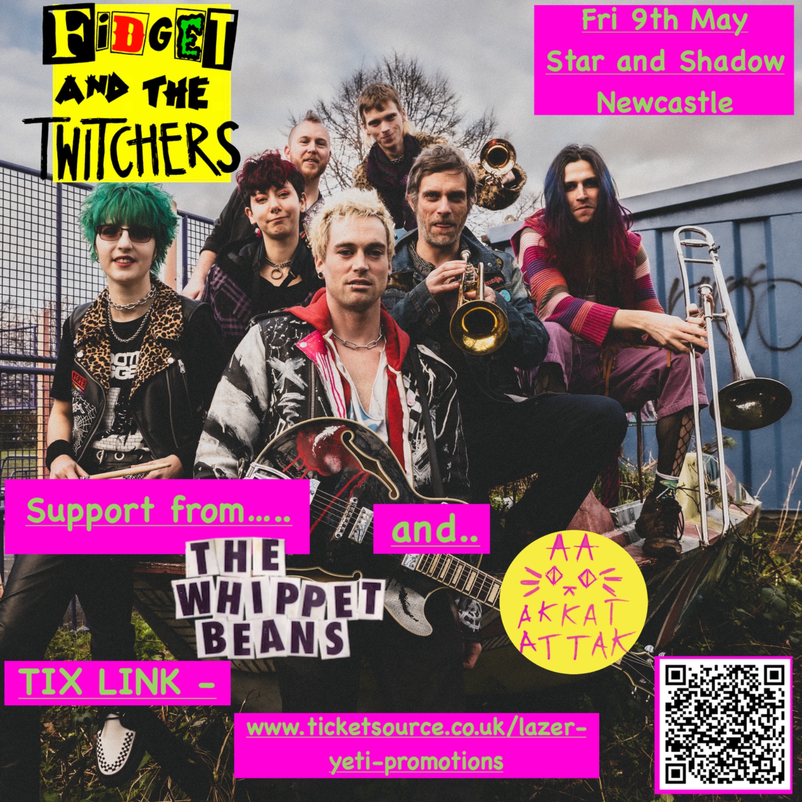 Inclusive beauties FIDGET AND THE TWITCHERS hit Newcastle, For a wild night of knees-up rhythms, cheeky lyrics and party vibes. Emerging from Bristols musical swamp The Twitchers, infectious horn lines and bubbling rhythm drive their punked-up ska sound.