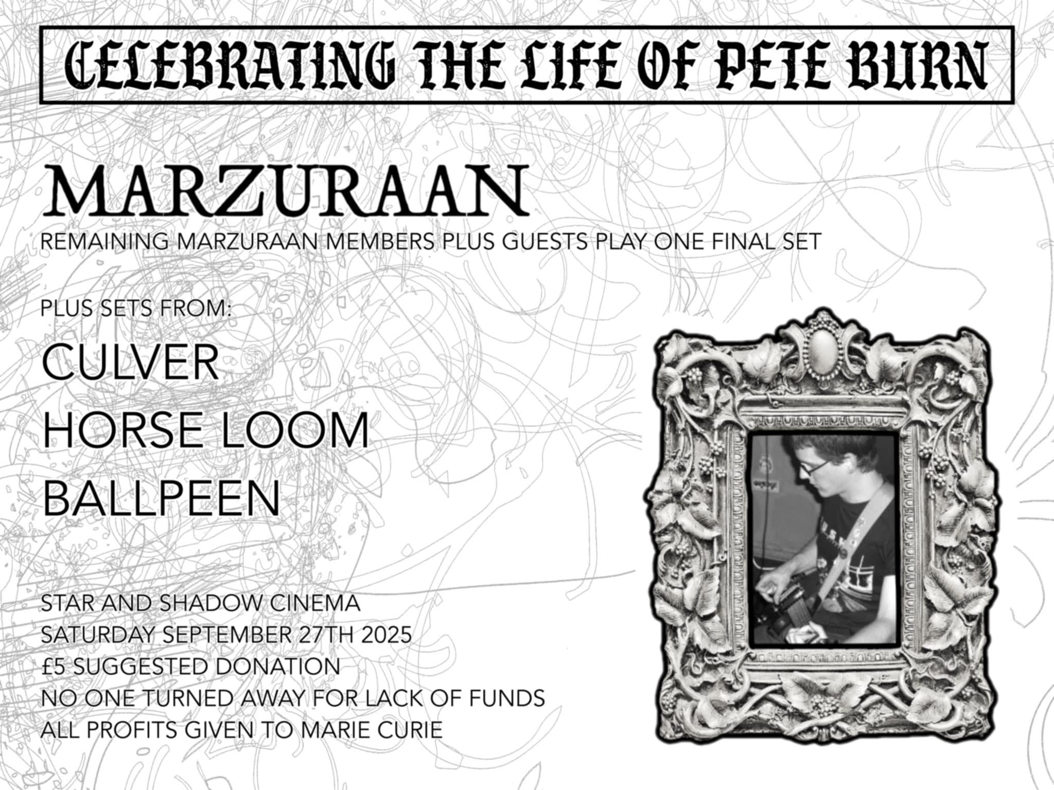 Join us as we celebrate the life of Pete Burn with this memorial fundraiser gig with all profits going to Marie Curie.