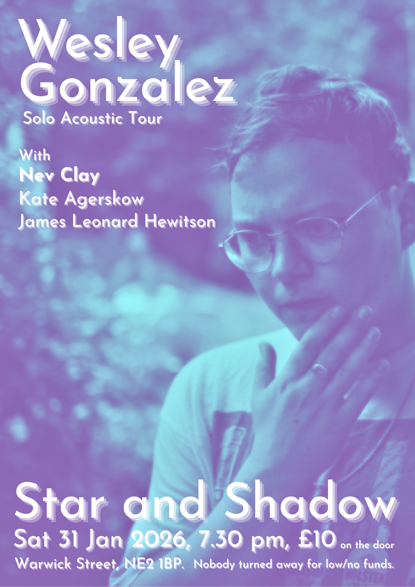 Wesley Gonzalez is a critically acclaimed songwriter from London. Having made three albums with perennially underrated rock bad Let's Wrestle, Wesley has embarked on a solo career as a vehicle for his dense, idiosyncratic songwriting- which is funny, profound and bleak in equal measure. Having explored a wide palette of musical textures, Wesley will embark on an acoustic tour in early 2026.